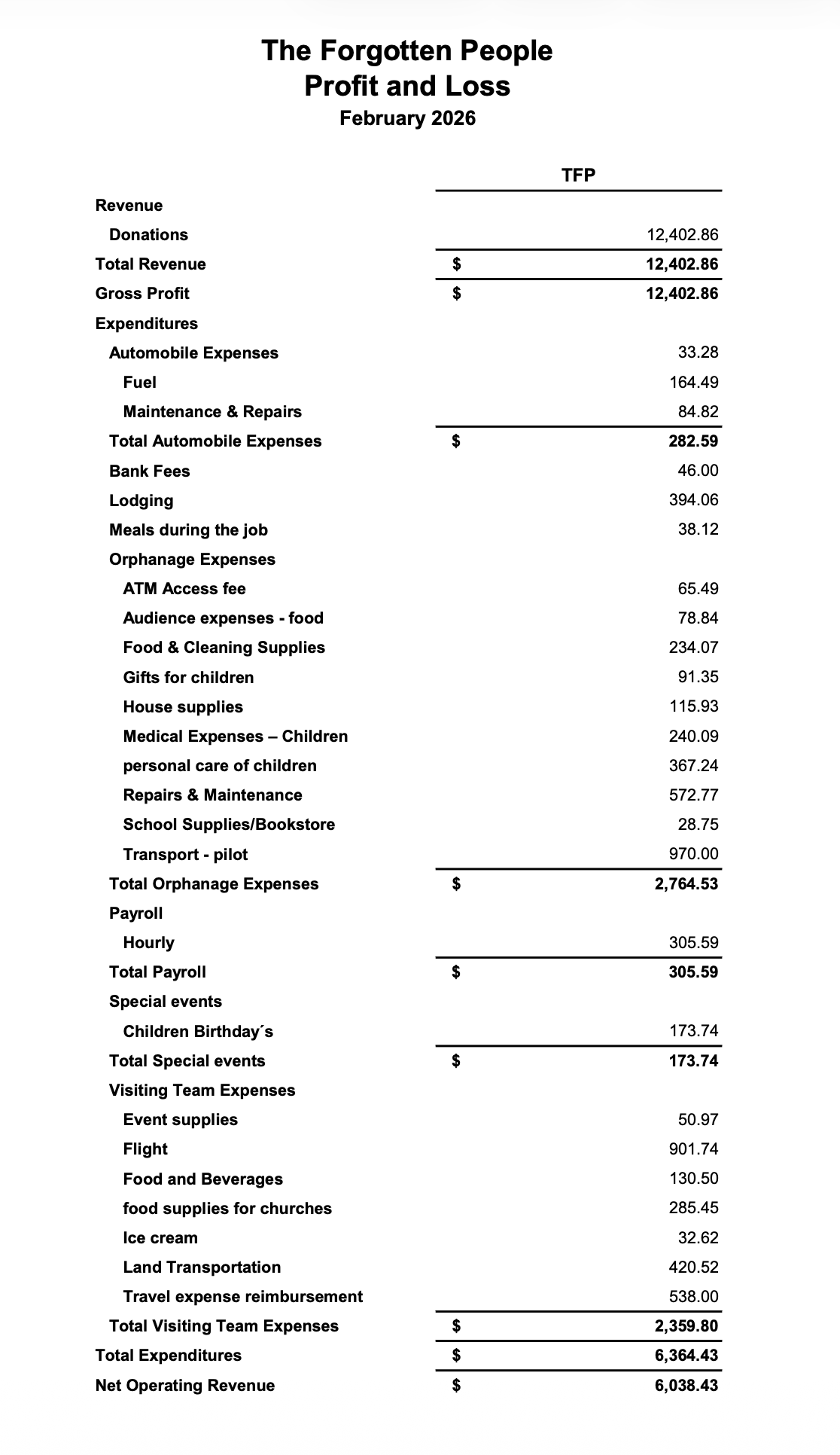 MONTHLY GOAL: $12,000